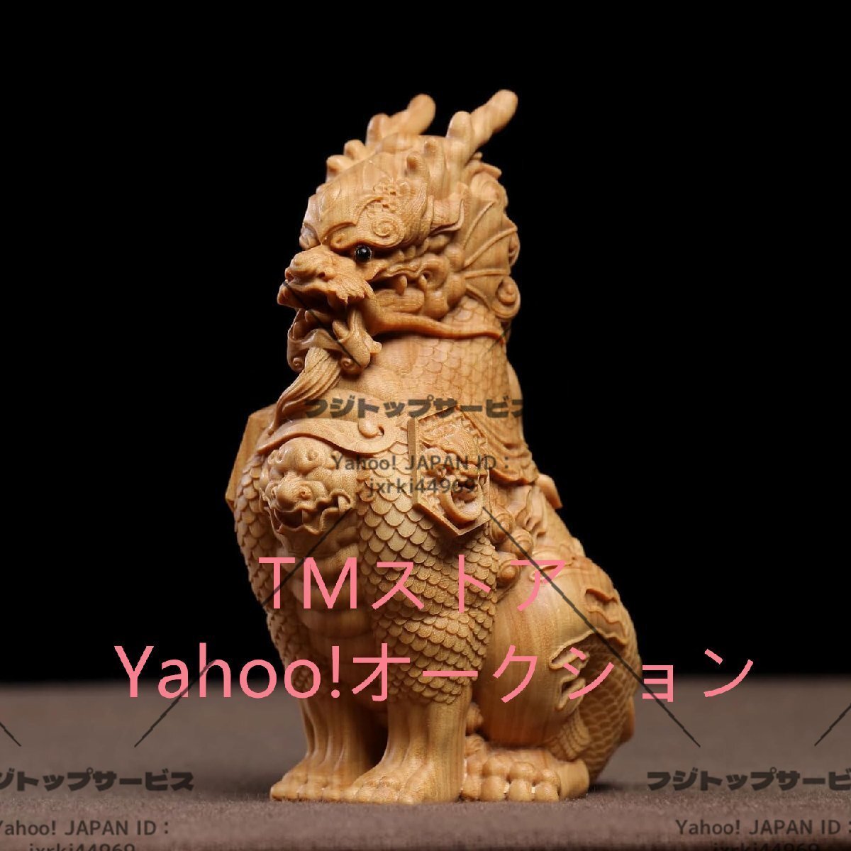 - 木彫り 置物 麒麟 置き物 風水 高級天然ツゲ木彫り 金運 置物 風水グッズ (高さ10cm)