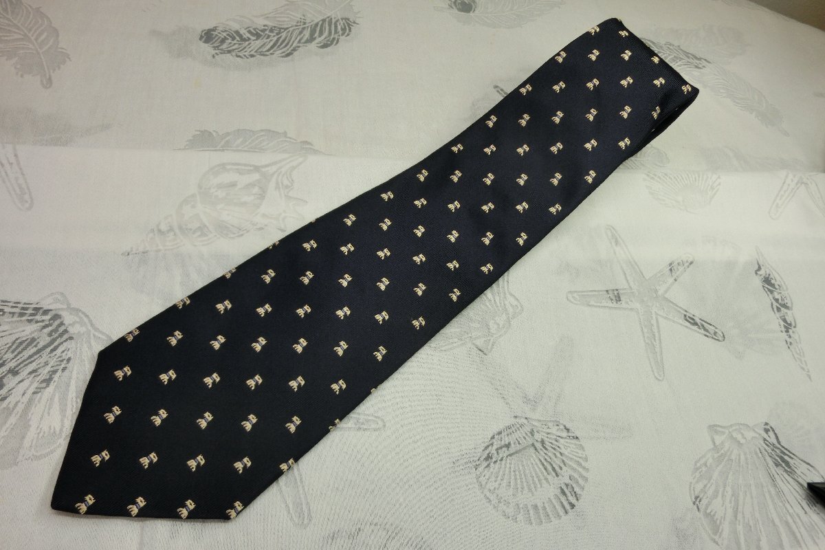 > ♪美品 イタリー製(正規品)★Salvatore Ferragamo/サルヴァトーレ・フェラガモ★濃紺・総柄可愛い犬柄デザインシルクネクタイ