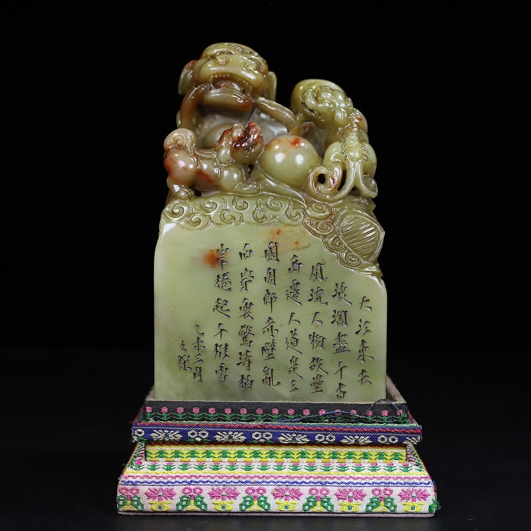 > 旧蔵 【清代篆刻家 趙之深】寿山芙蓉結晶凍石 【太師少師】子母獅子鈕印鑑一方 天然石 手彫 篆刻 極細工 中国古玩 骨董品 古美味 210