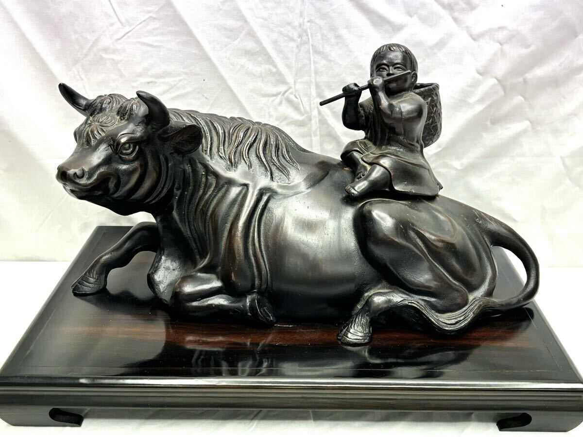 - 1円〜 牛童子 金属工芸 騎牛笛吹童子 置物 鋳物 鉄製 古美術 縁起物 重量約7.6kg 伝統工芸品 オブジェ 時代金工 レトロ アンティーク 雑貨