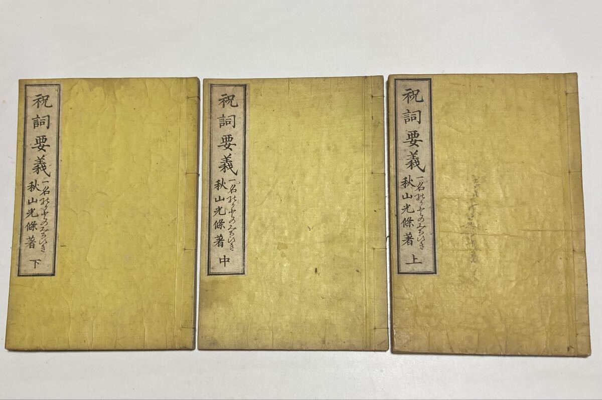 - 「祝詞要義」上中下三冊 秋山光條編 明治十七年刊 伊豆小西版 古書 和本