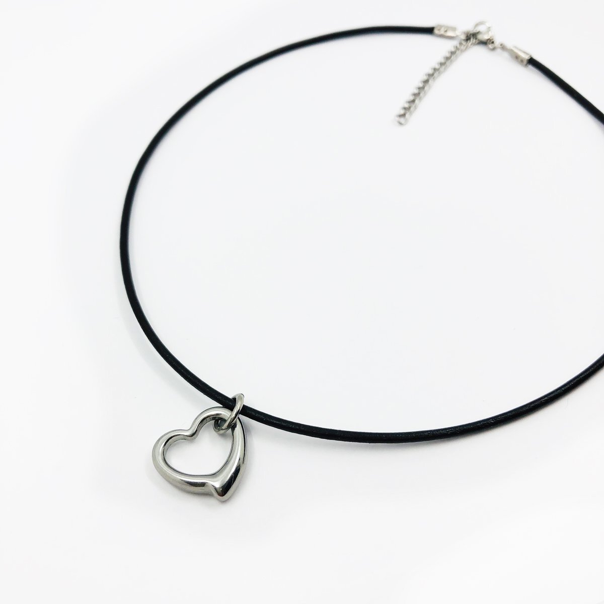 - ハート レザーチョーカー ステンレスチャーム付き 45cm(40+5cmアジャスター) SNC10