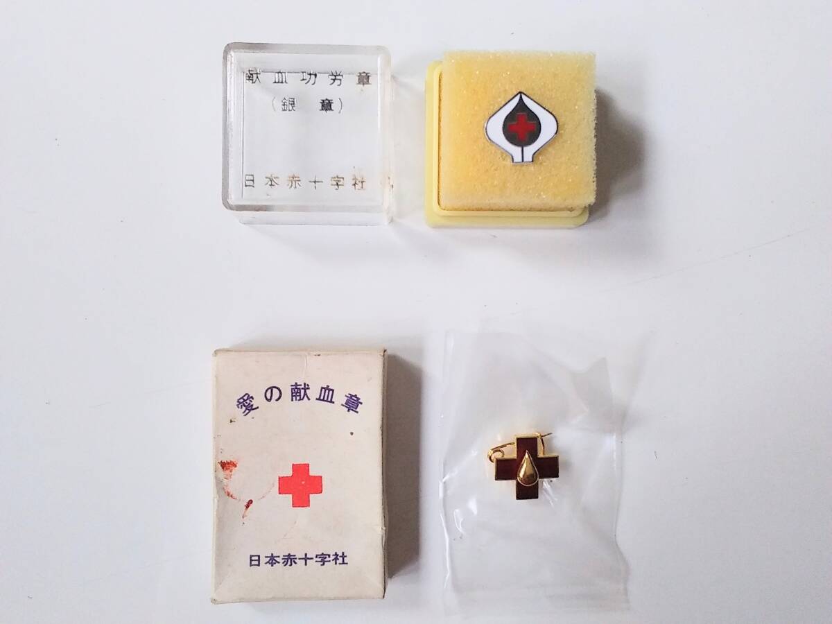 - 日本赤十字社 献血功労賞(銀章) 愛の献血章 バッジ 2点セット