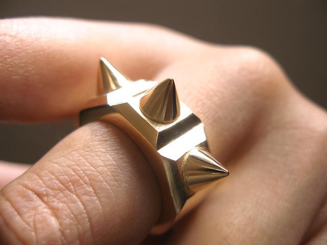 - 仁尾彫金『ゴールド3つのマッドスパイクリング』ハンドメイド104