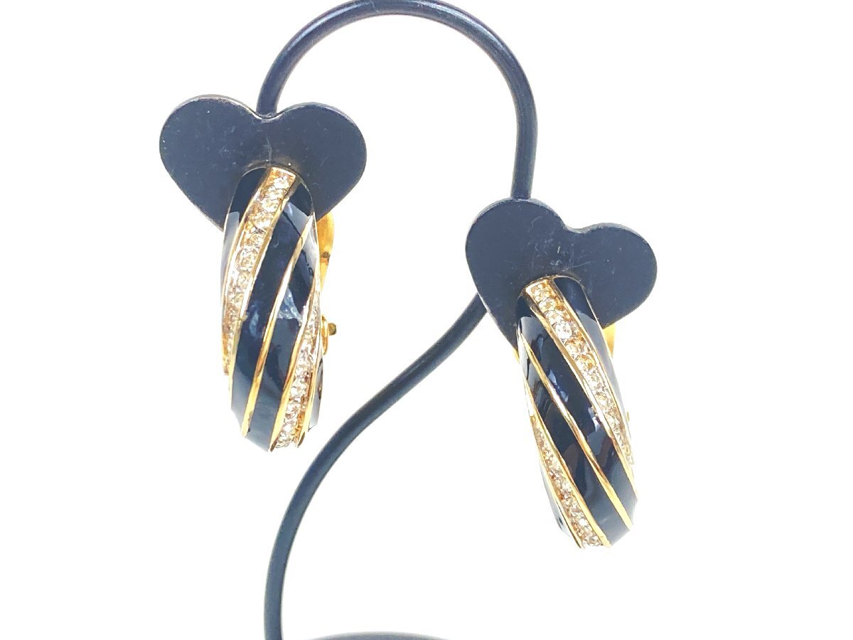 > ニナリッチ NINA RICCI ラインストーン デザイン イヤリング ブラック×ゴールドカラー YAS-11679