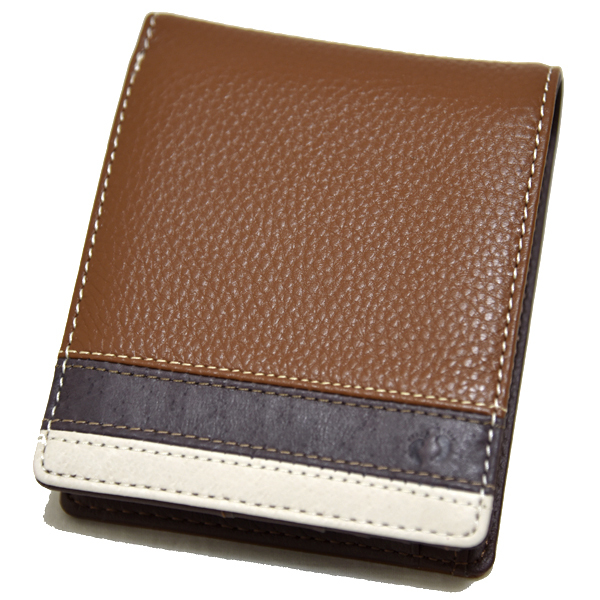 - 新品 本革 HANGTEN 二つ折り財布 ハンテン レザー 未使用 メンズ コンパクト 型押し ブランド カジュアル ブラウン 茶色
