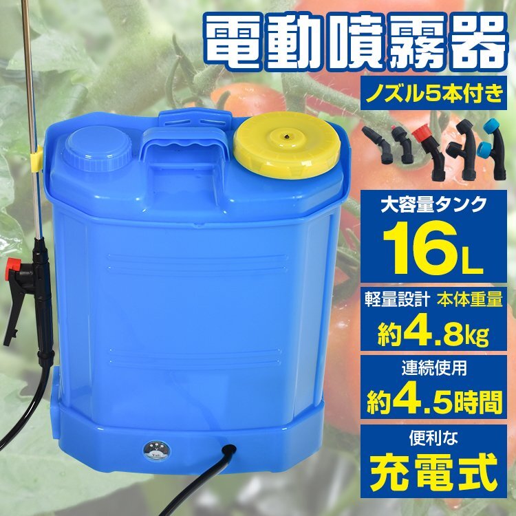 - 送料無料 噴霧器 電動 充電式 ノズル 背負い式 16L 農薬 除草剤 散布 液体肥料 水やり 農業 ガーデニング 消毒 殺虫剤 害虫駆除 洗車 ny525
