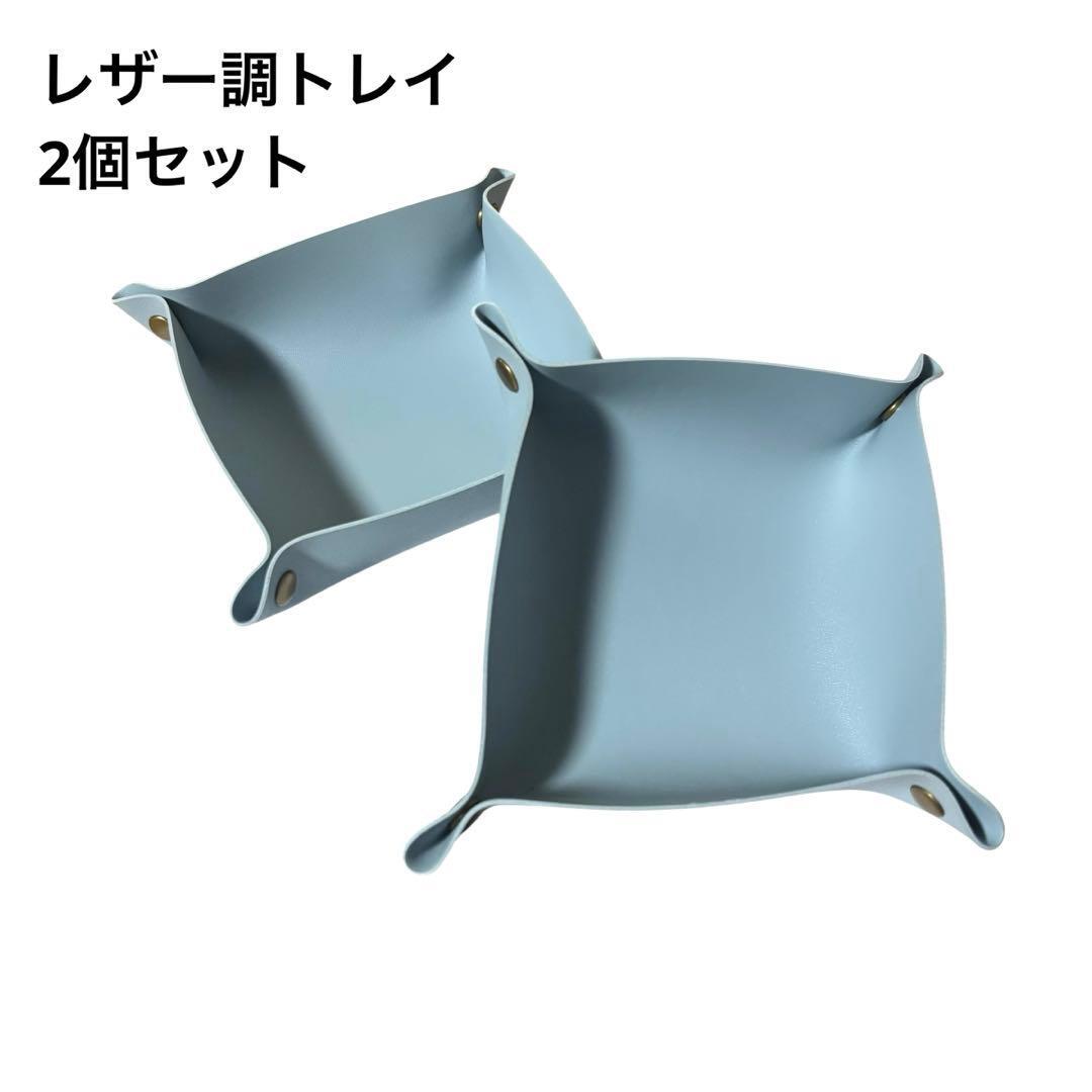 - レザー調 トレイ 二個セット 水色 キャッシュトレイ カルトン 小物入れ