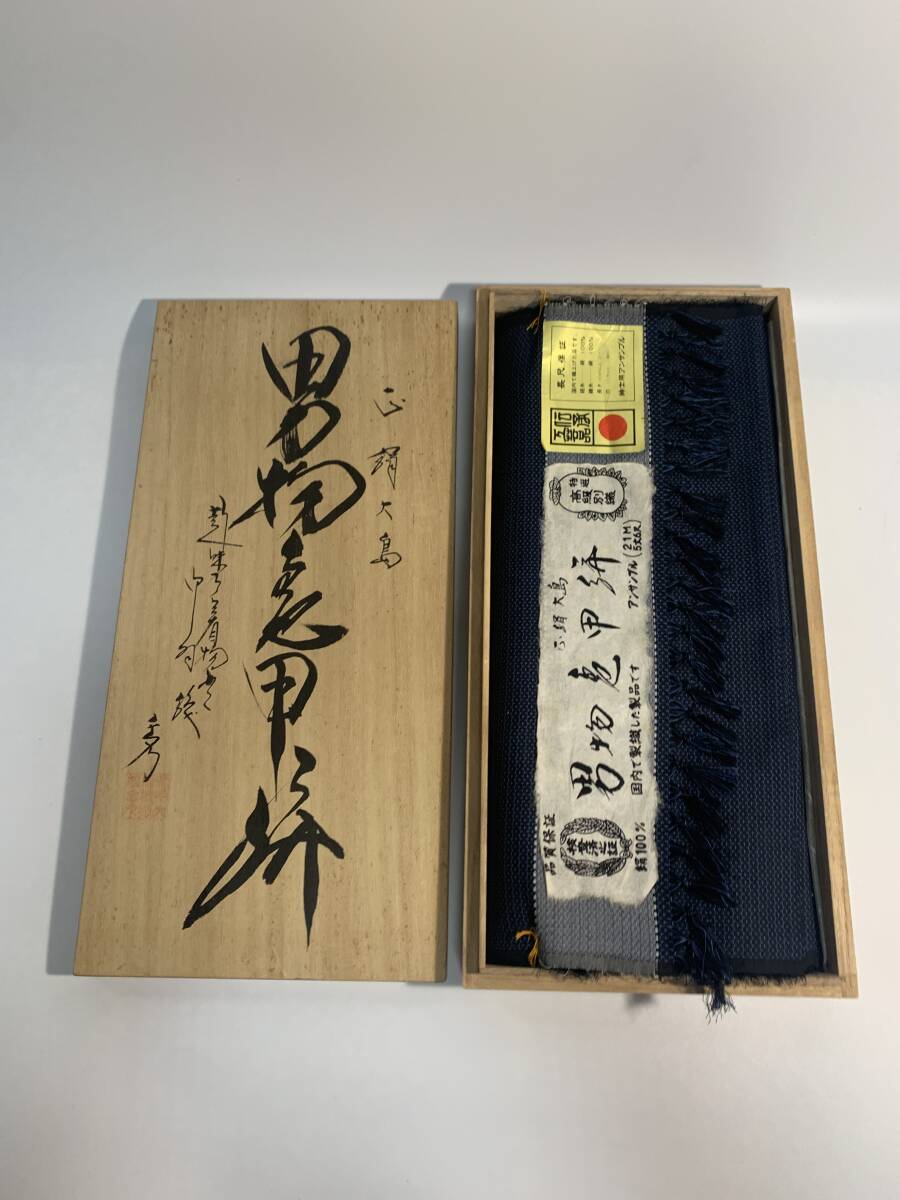 > 正絹大島 亀甲絣 男物 品質保障絹100%長さ5寸6尺以上21m 幅1尺以上38cm 反物 伝統工芸品 箱付き