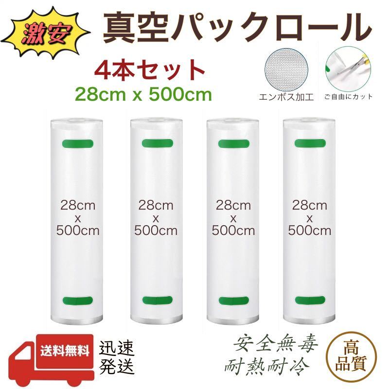 - 真空パックロール エンボス加工 真空袋 真空パック機専用袋 ポリ袋 真空袋 脱気 密封 真空保存 28x500cm 4本 業務用 家庭用