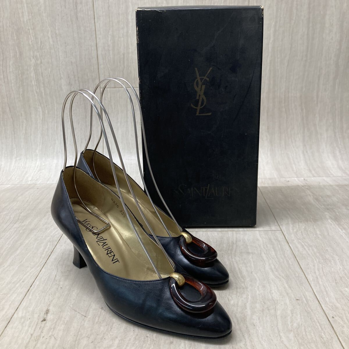 - M316 FN-251003-303 Yves Saint Laurent イヴ・サンローラン レザーパンプス パンプス ヒール べっ甲 ブラック レディース 35 2/1