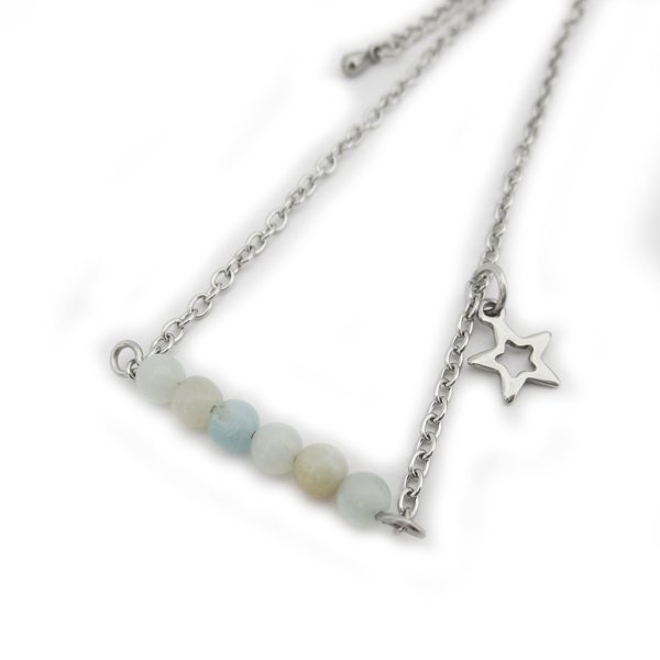 - ステンレスチェーンアンクレット アマゾナイト 約4.5mm 小豆幅2mm 25cm(21+4cmアジャスター)