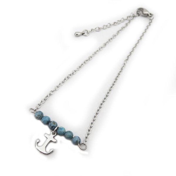 - ステンレスチェーンアンクレット アパタイト 約4mm 小豆幅2mm 27cm(23+4cmアジャスター)