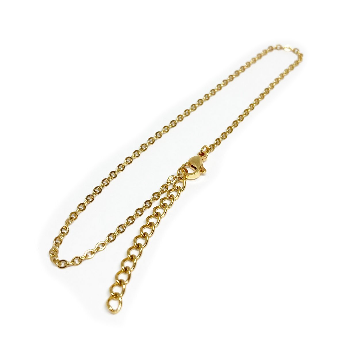 - ステンレスアンクレット 平小豆 ゴールドチェーン幅2mm 26cm(22cm+4cmアジャスター) GN68