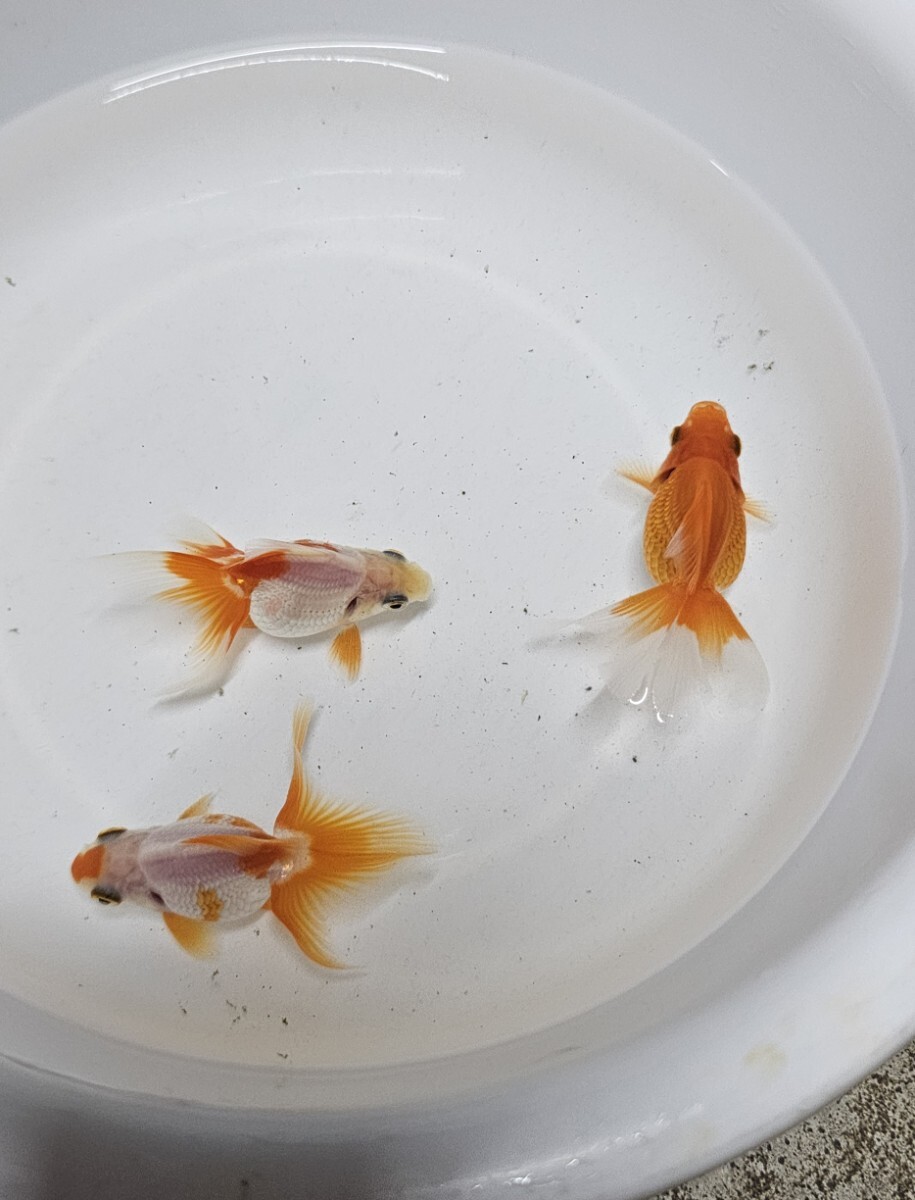 - 琉金 弥富琉金 更紗琉金 更紗 5cm 3匹 当才 雄雌不明 自家産 2025年産 金魚 リュウキン