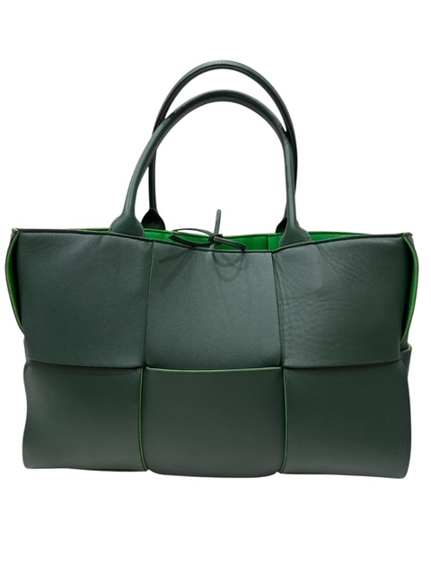 - H7-10-25 BOTTEGAVENETA ボッテガヴェネタ スモールアルコトート イントレチャート ハンドバッグ トートバッグ グリーン レザー