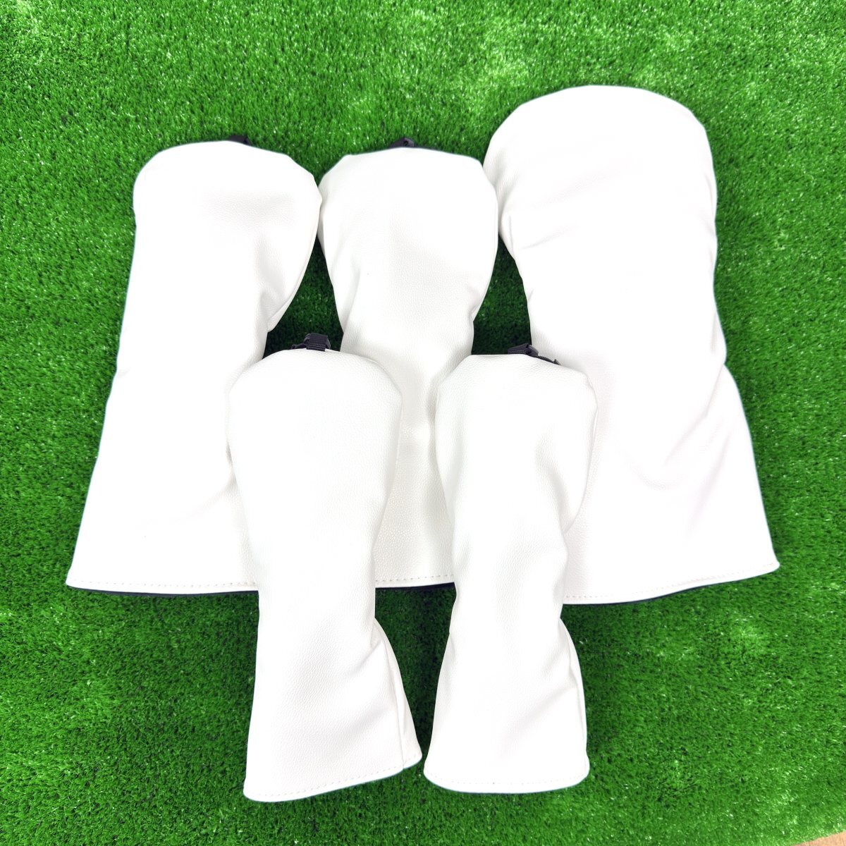> ★ノーロゴ PUレザー ヘッドカバー キャットハンド型 5個組(DR+FWx2+UTx2)ホワイト★