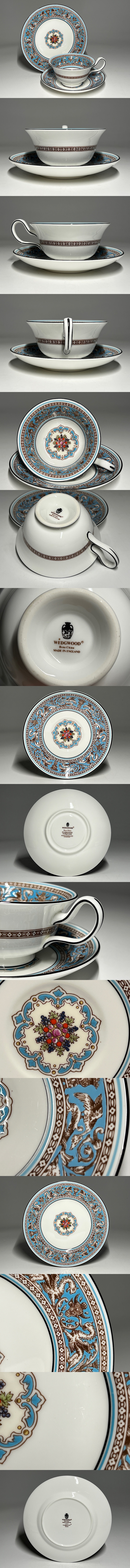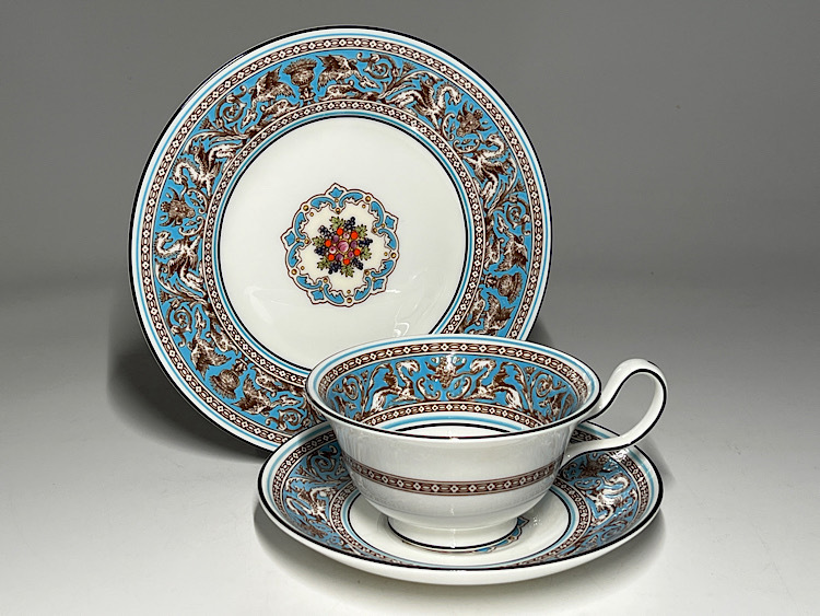 - 【瑞】ウェッジウッド WEDGWOOD ターコイズ フロレンティーン カップ&ソーサー +ケーキ皿
