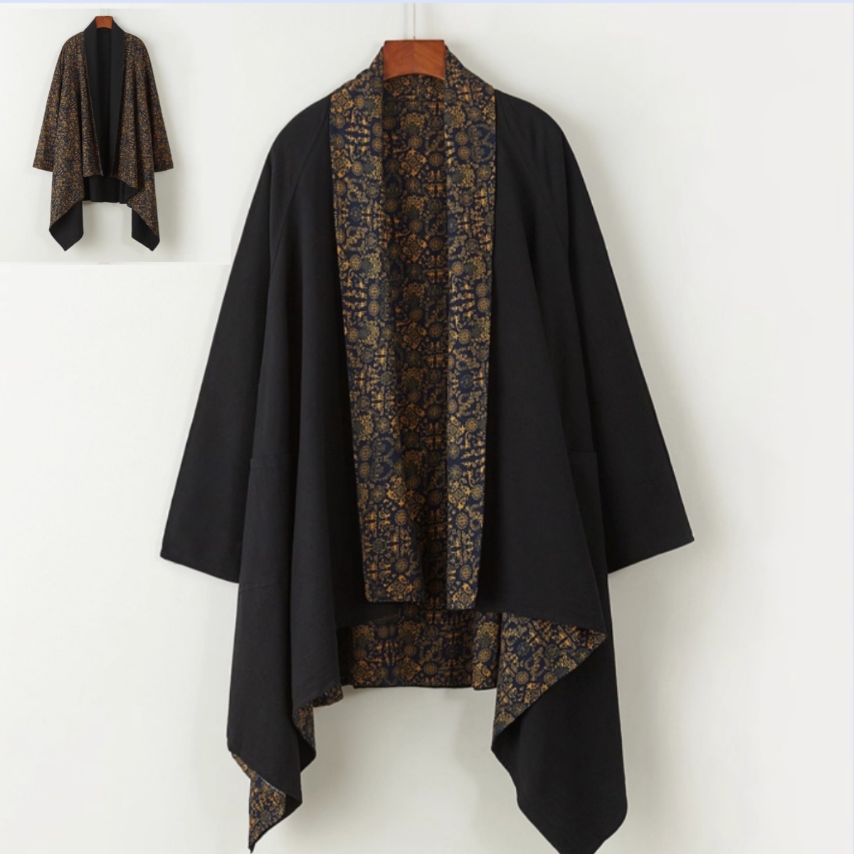 - カーディガン ロングカーディガン 綿麻 メンズ★新品 カジュアルジャケット 羽織 振袖 お祭り花火大会着物【409-1-C017/BW】黒色