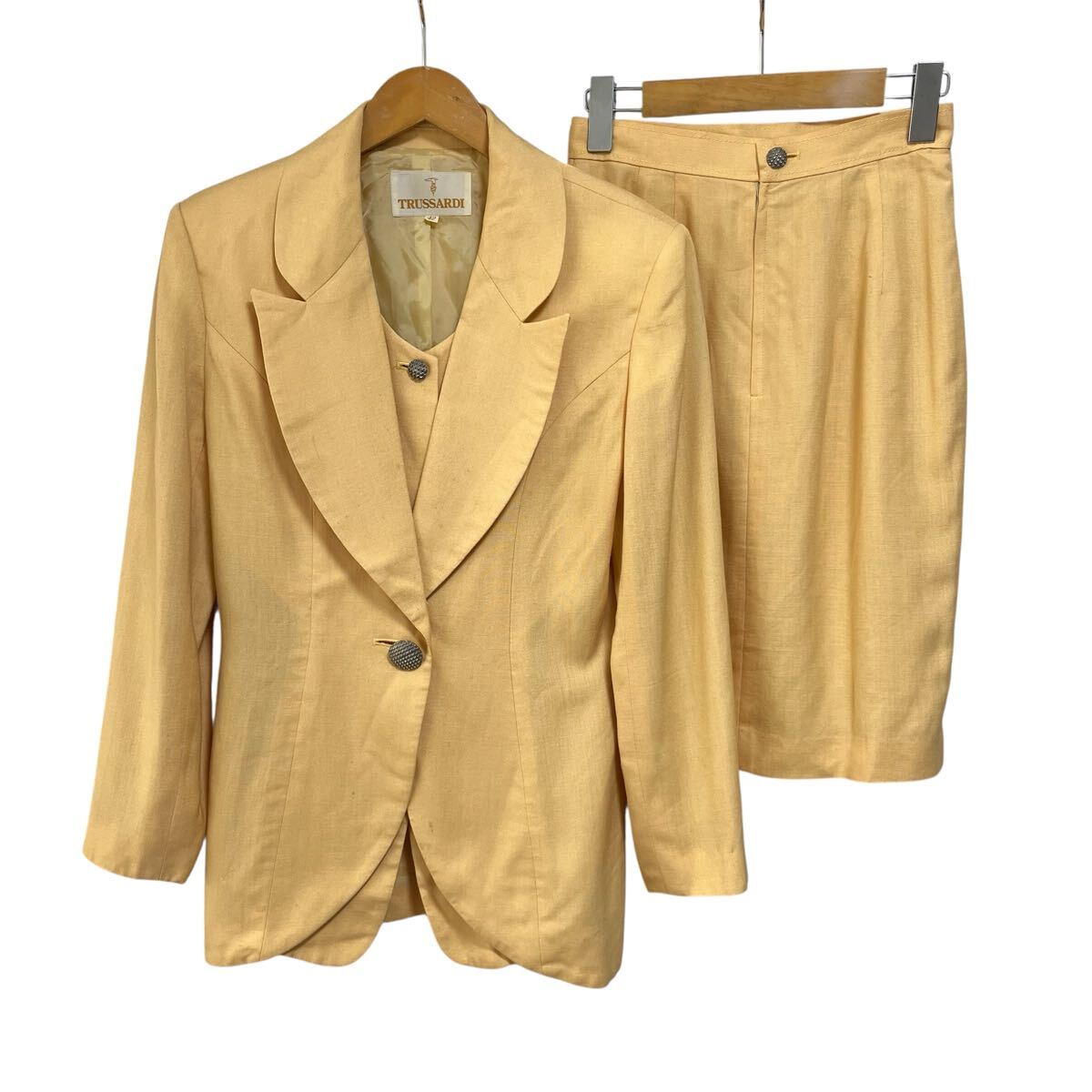 > ※SU2 TRUSSARDI トラサルディ スーツ セットアップ オレンジ 麻 フェイクレイヤードジャケット ひざ丈スカート 日本製 表記42 XL相当