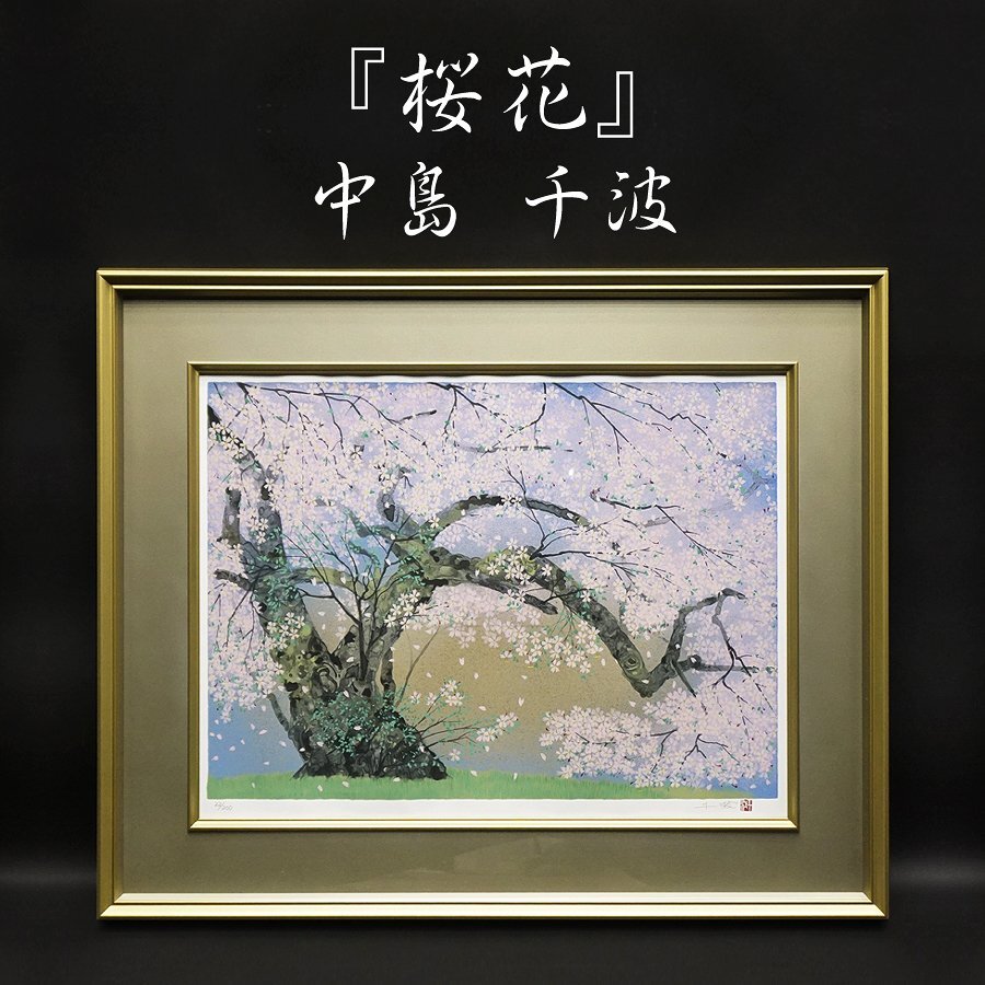 - 中島千波『桜花』22/200 シルクスクリーン 版画 絵画 日本画 額装 美術 芸術 大判 肉筆サイン有 古美術品