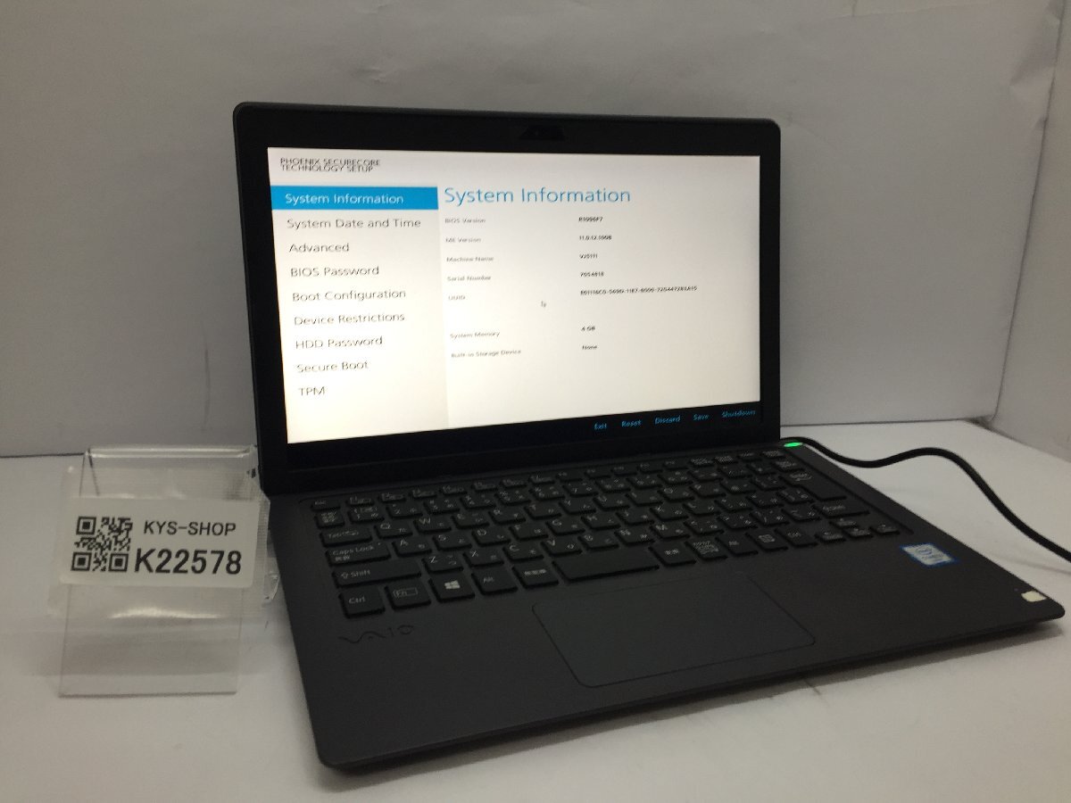 - ジャンク/ VAIO VJS111 Intel Core i3-6100U メモリ4.1GB ストレージ無し 【K22578】