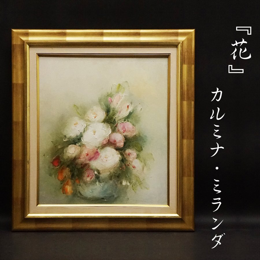 > カルミナ・ミランダ CARMIA MIRANDA『花』10号 スペイン画家 油彩 油絵 直筆 静物画 裏書サイン 絵画 額装 芸術 アート 古美術 真作保証品