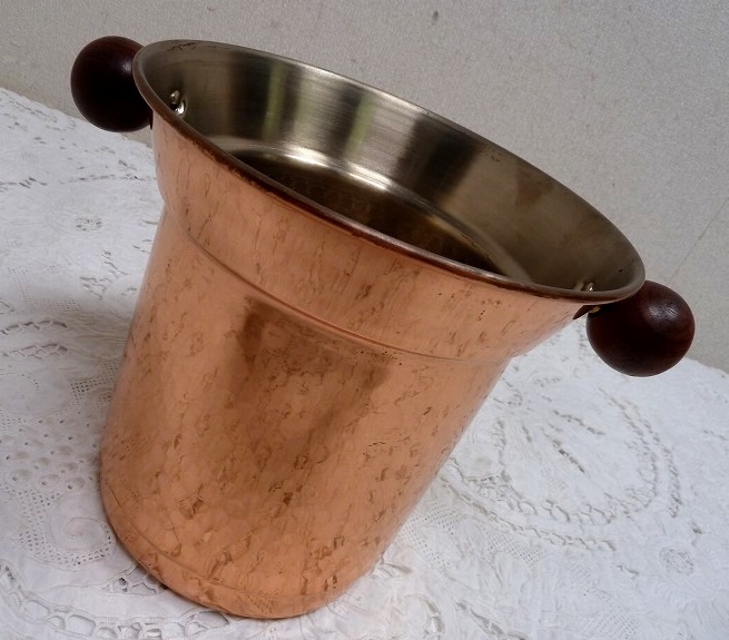 > (☆BM)COPPER100 HOME WARE 銅製 コッパー(0814-①)ワインクーラー アイスペール 鎚目 クラッシックレトロ バケツ
