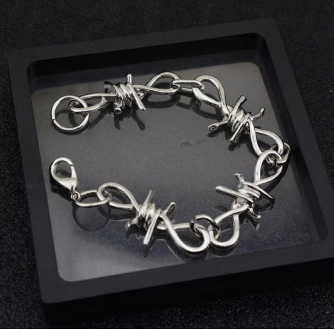 - 有刺鉄線 ブレスレット シルバーチェーン 韓国ファッション ロック系