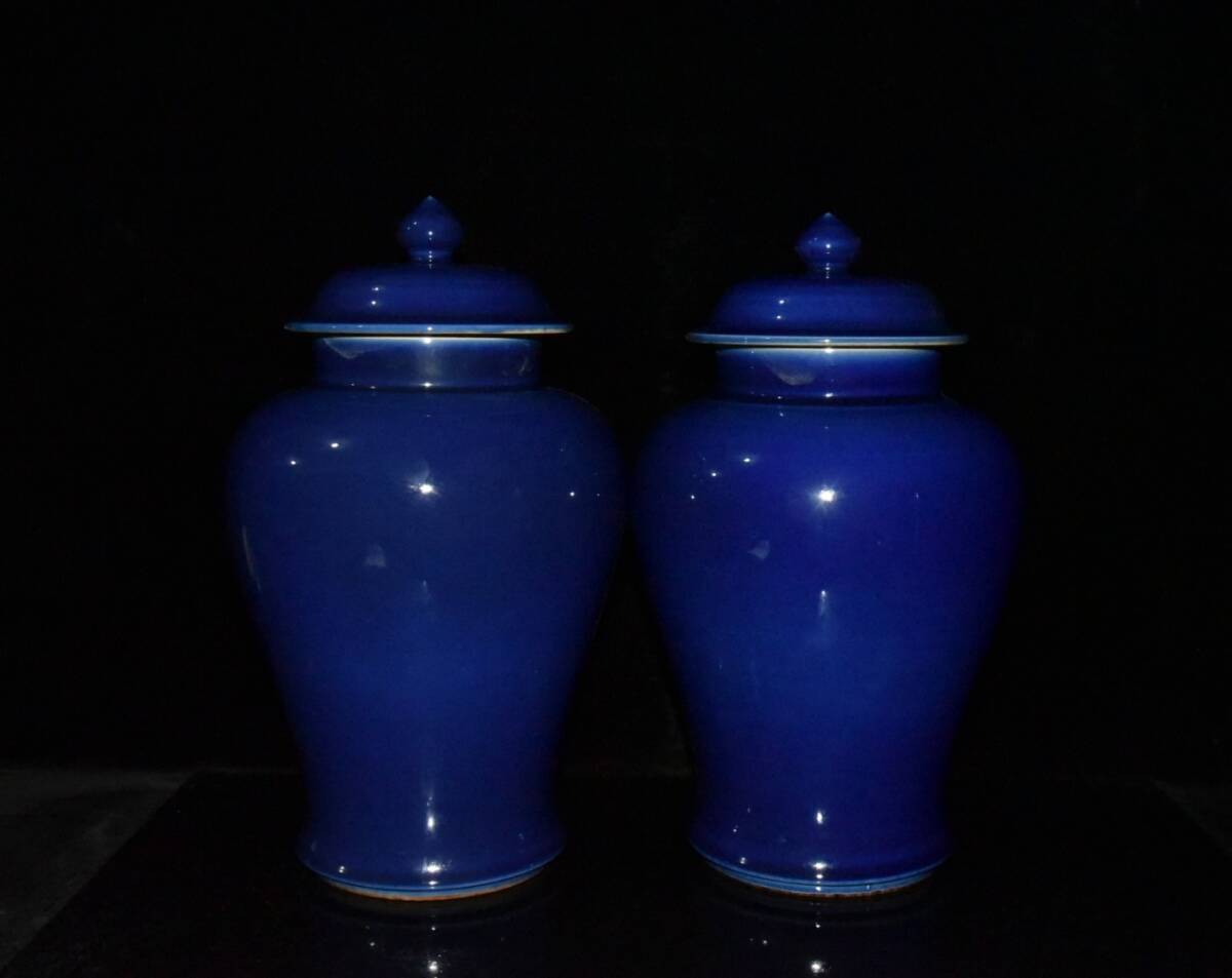 - 『館蔵珍品 清 康熙年制款 古陶瓷品 霽藍釉 將軍罐一對 陶藝』稀少珍蔵品 古賞物 貴重物品 収蔵品 中国古美術 時代物 古董品