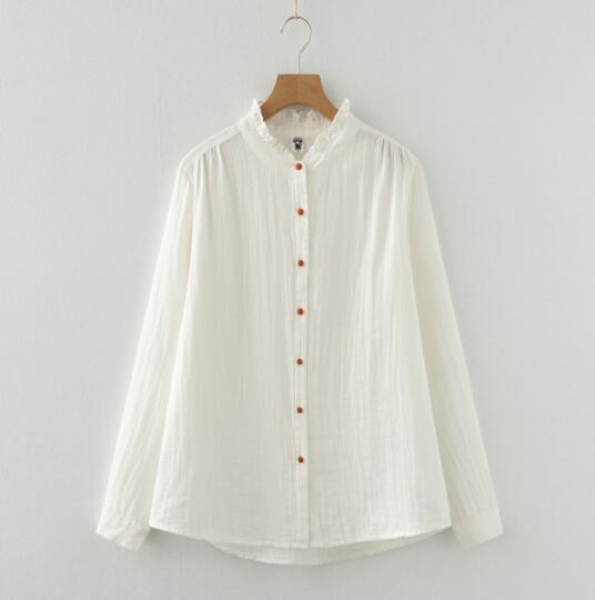 - 新入荷 ダブルガーゼ フリーサイズ ワイシャツ チュニック トップス ナチュラル 綿100% 通気性肌触り抜群 サラサラ ホワイト ギャザー