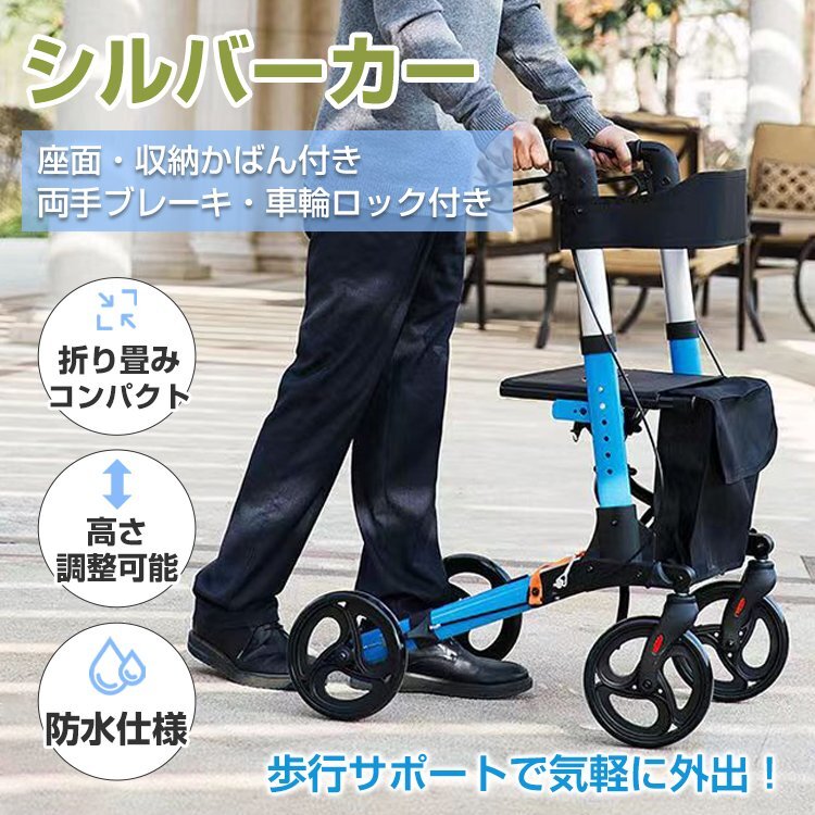 - 訳あり シルバーカー シルバーカート おしゃれ 座れる 歩行器 折りたたみ 介護用品 買物 コンパクト ブレーキ付き 折り畳み 車椅子 sg083-w