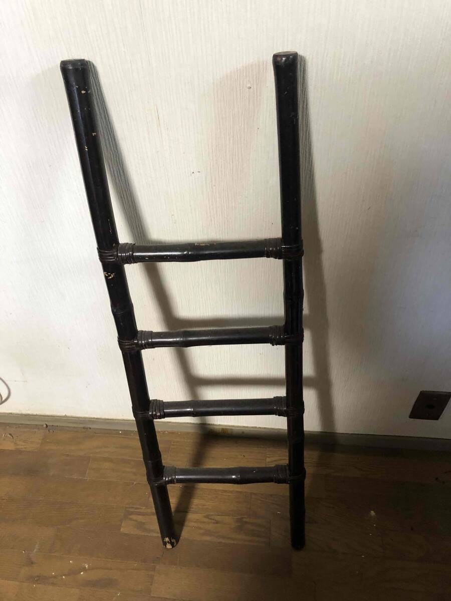 - 黒竹 飾り梯子 約1m 煤竹? 古民具 ディスプレイ ラダーラック 和風 レトロ 竹製ミニ梯子 はしごラック 華道 古道具