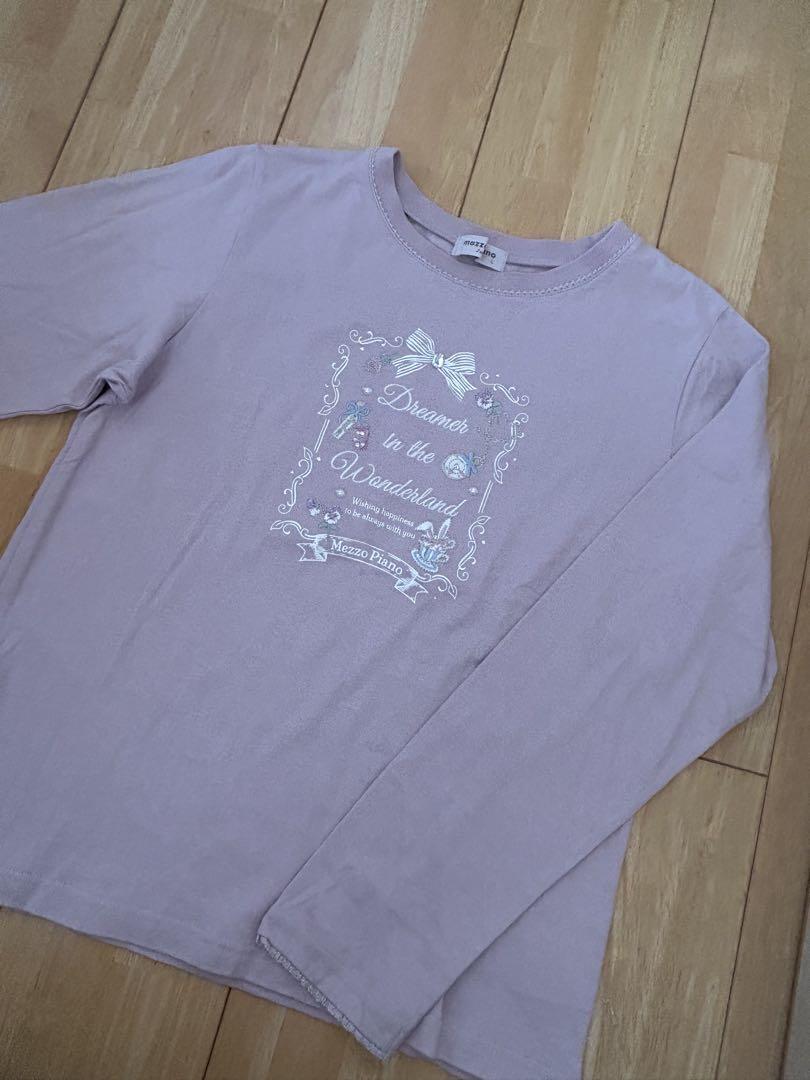 > ★美品★メゾピアノ★ジュニア★くすみピンク色★100%棉★長袖Tシャツ★サイズS140
