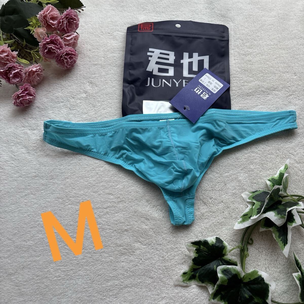 - 新品 メンズ Mサイズ JUNYEON 触り心地超いい ライトブルー ぴったり もっこり Tバック ビキニ ブリーフ パンツ ショーツ