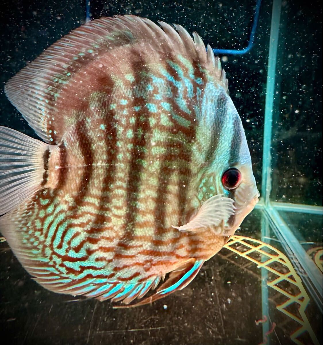 - 【現物出品・マツヨシワールド】極上珍品 ターコイズディスカス 12〜13cm 青光沢×レッドライン 輝く美模様 極美個体