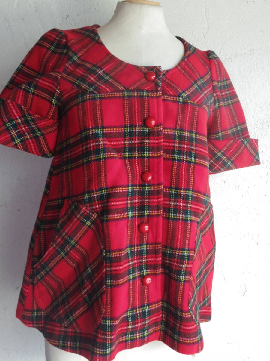 > 古着♪レトロVintage赤タータンチェックシャツジャケット♪ 昭和レトロ70s60s70年代60年代 昭和レトロヨーロッパモダン シャツ