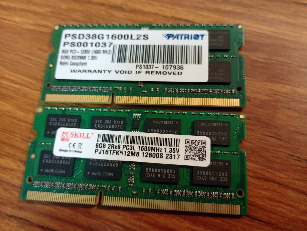 - Patriot製 + PUSKILL製 【低電圧】 合計16GB(8GB×2枚) PC3L-12800S 基板類似 ペア仕様推奨