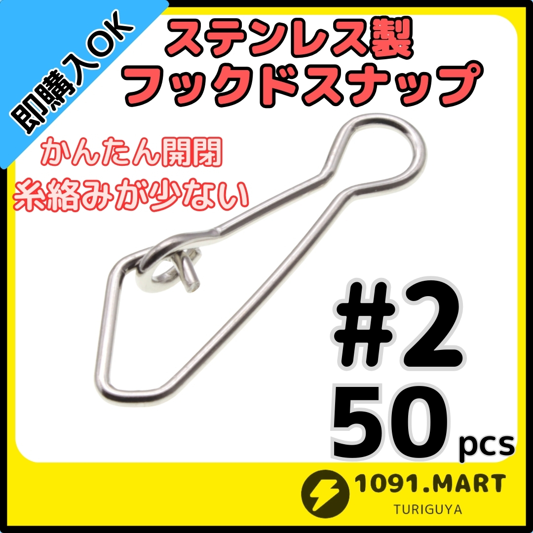 > 【送料150円】ステンレス製 フックドスナップ #2 50個セット インタースナップ ルアー釣り エギング かんたん開閉 すり抜け抜群!