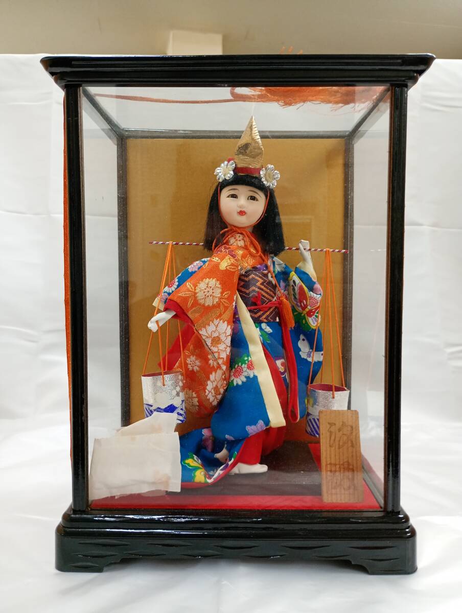 - ★日本人形 汐汲 ★ 舞踊人形 伝統品 美術 コレクション ガラスケース アンティーク 置物 インテリア 中古現状品