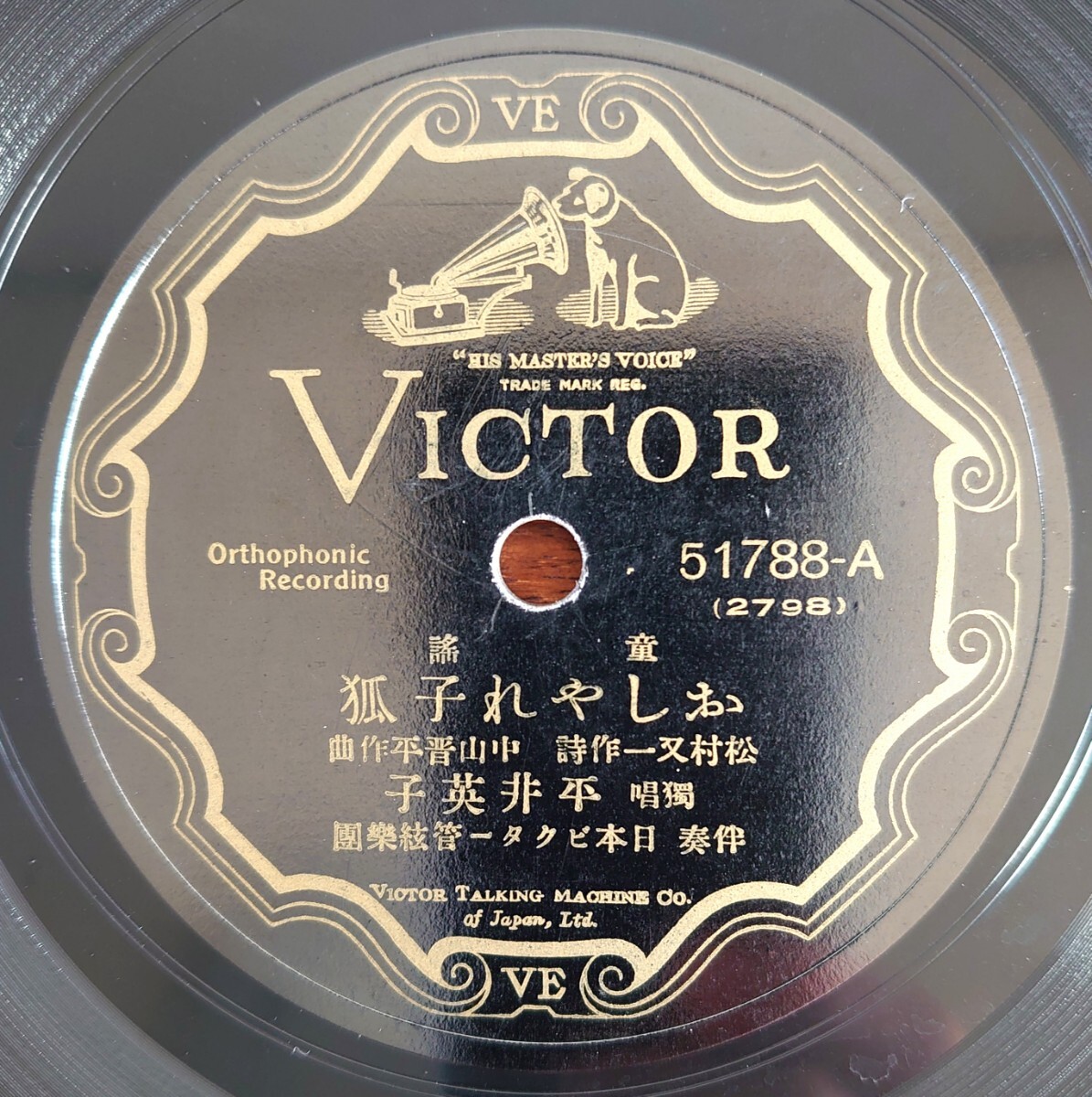 - 【SP盤レコード】VICTOR 51788 童謠/おしやれ小狐/おみやげ三つ/獨唱:平井英子