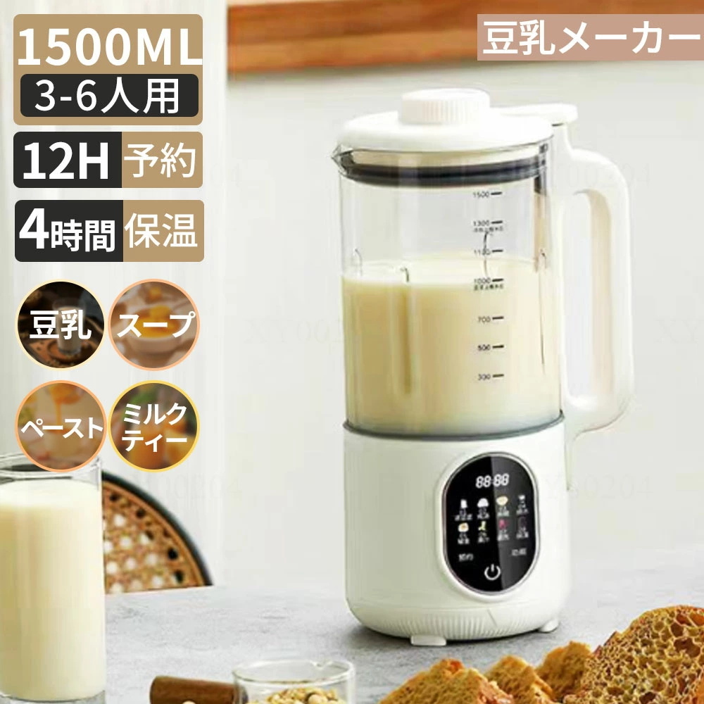 - 豆乳メーカー 自動調理ポッ ジュースメーカー スープメーカー 保温4H 12時間予約 1.3L 氷も砕ける 離乳食 フルーツ 野菜 簡単洗浄 濾過不要