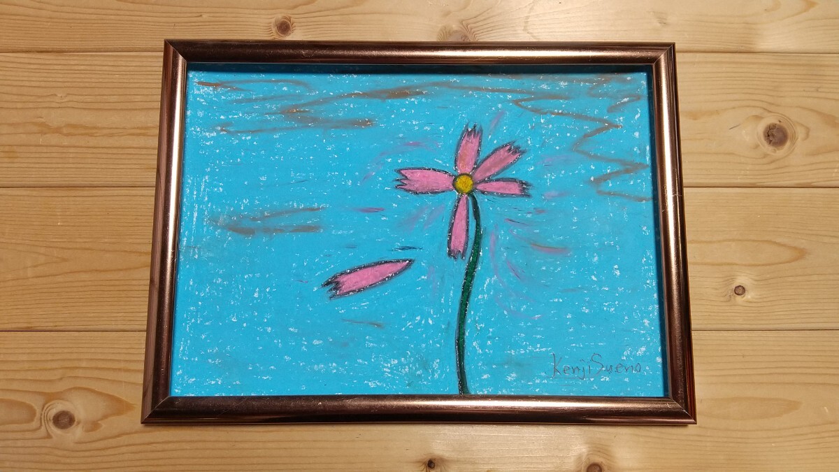> 【終わったコスモス】手描き 肉筆 クレヨン画 絵画 A4サイズ 812,Crayon painting, oil pastel painting, original art