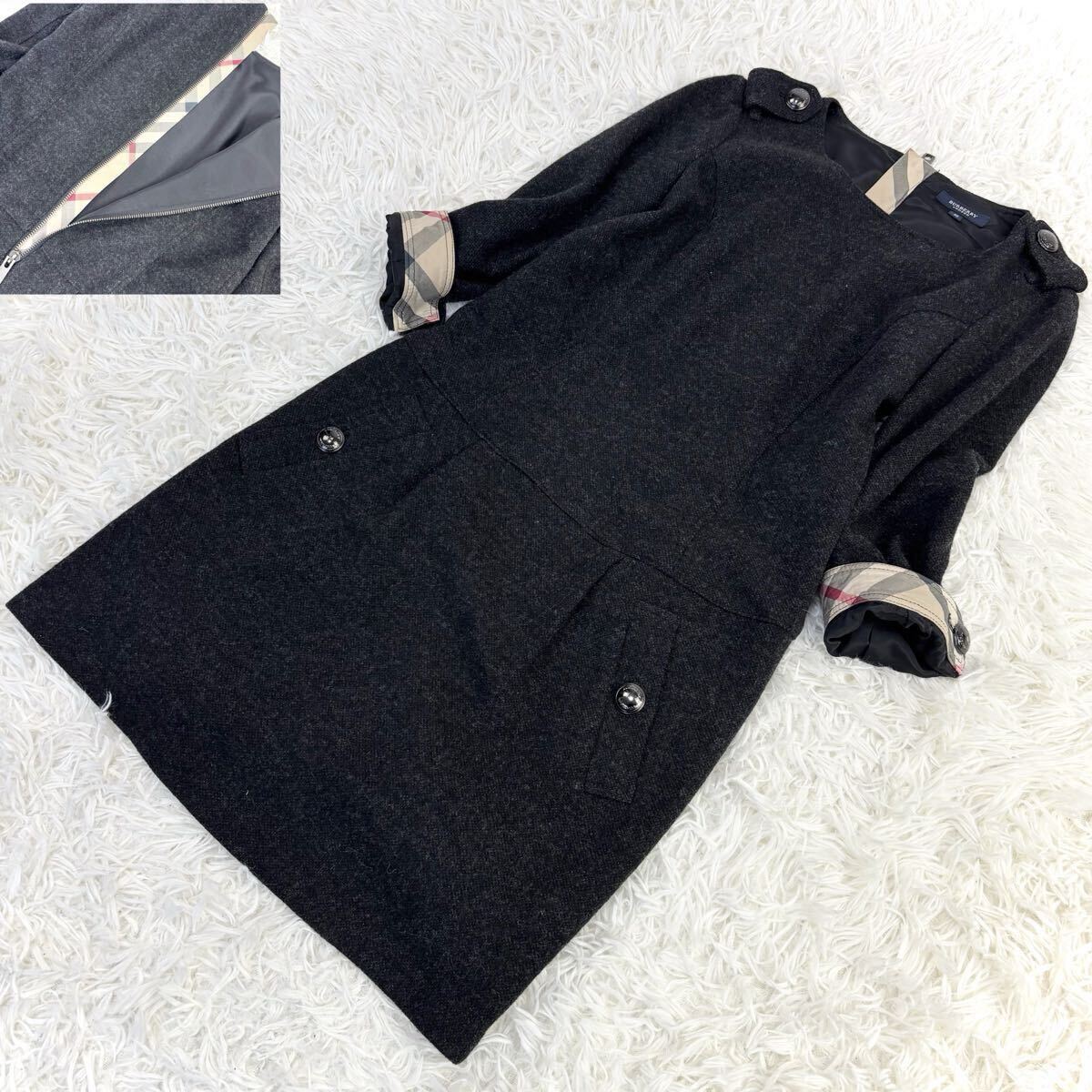 - 『上質素材!』三陽商会 BURBERRY LONDON バーバリー ロンドン カシミヤウール ノバチェック ワンピース チャコール 38 レディース