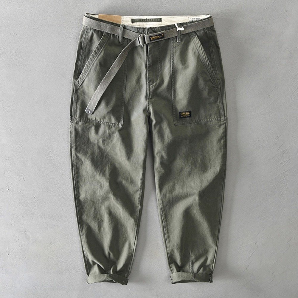 - メンズカーゴパンツ ワイドパンツ チノパン コットンズボン 無地 ワークパンツ ロング カジュアル ボトムス 軍パン アウトドア グレー 32