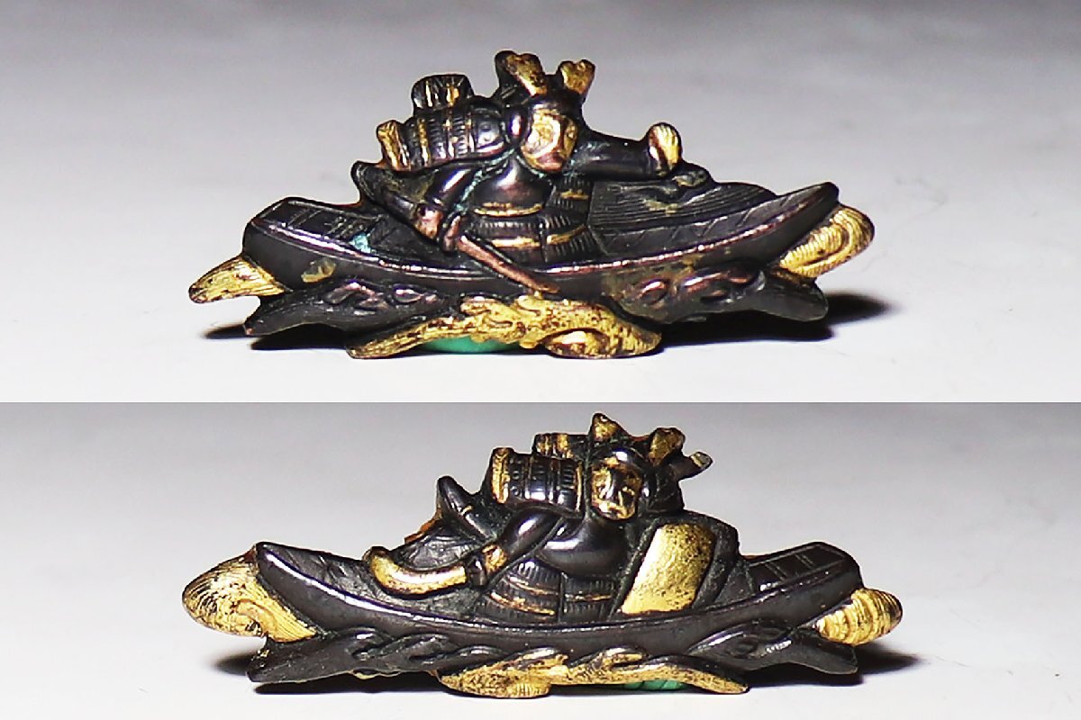 - 【桃】刀装具:金工銅地金象嵌舟上の武士目貫