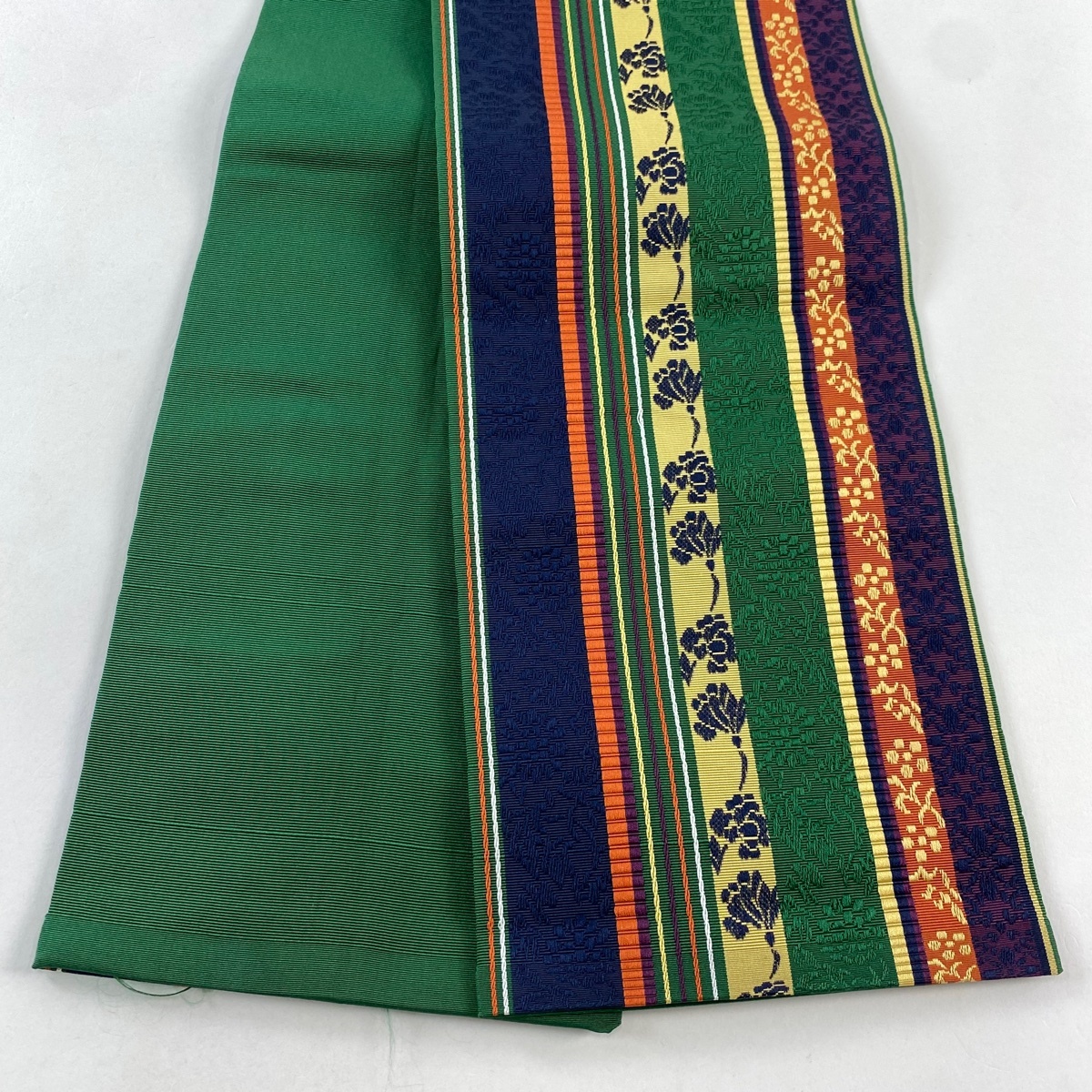 - 半幅帯 美品 秀品 博多織 証紙 縞 草花 緑 正絹 【中古】