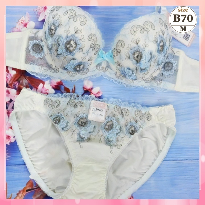 > Zb7011◆新品 ブラショーツセット【B70/M】下着 ランジェリー 丸胸 ネモフィラ&ハートリーフ クリーム