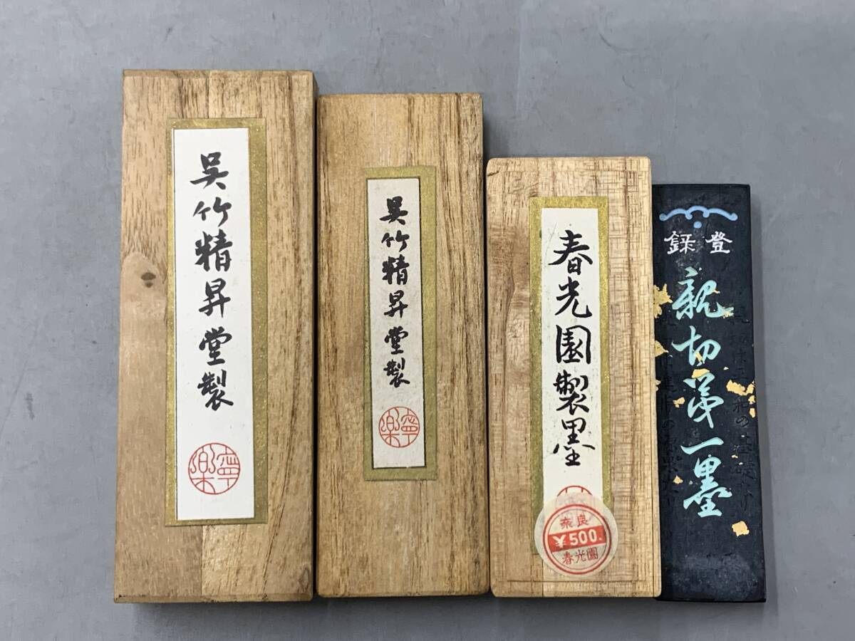 > 10#D/90033 古墨 呉竹精昇堂製 春光園製墨 尚德 涼乗竹有陰 等 4点セット 中国古墨 中国墨 古墨 唐墨 書道具 60サイズ