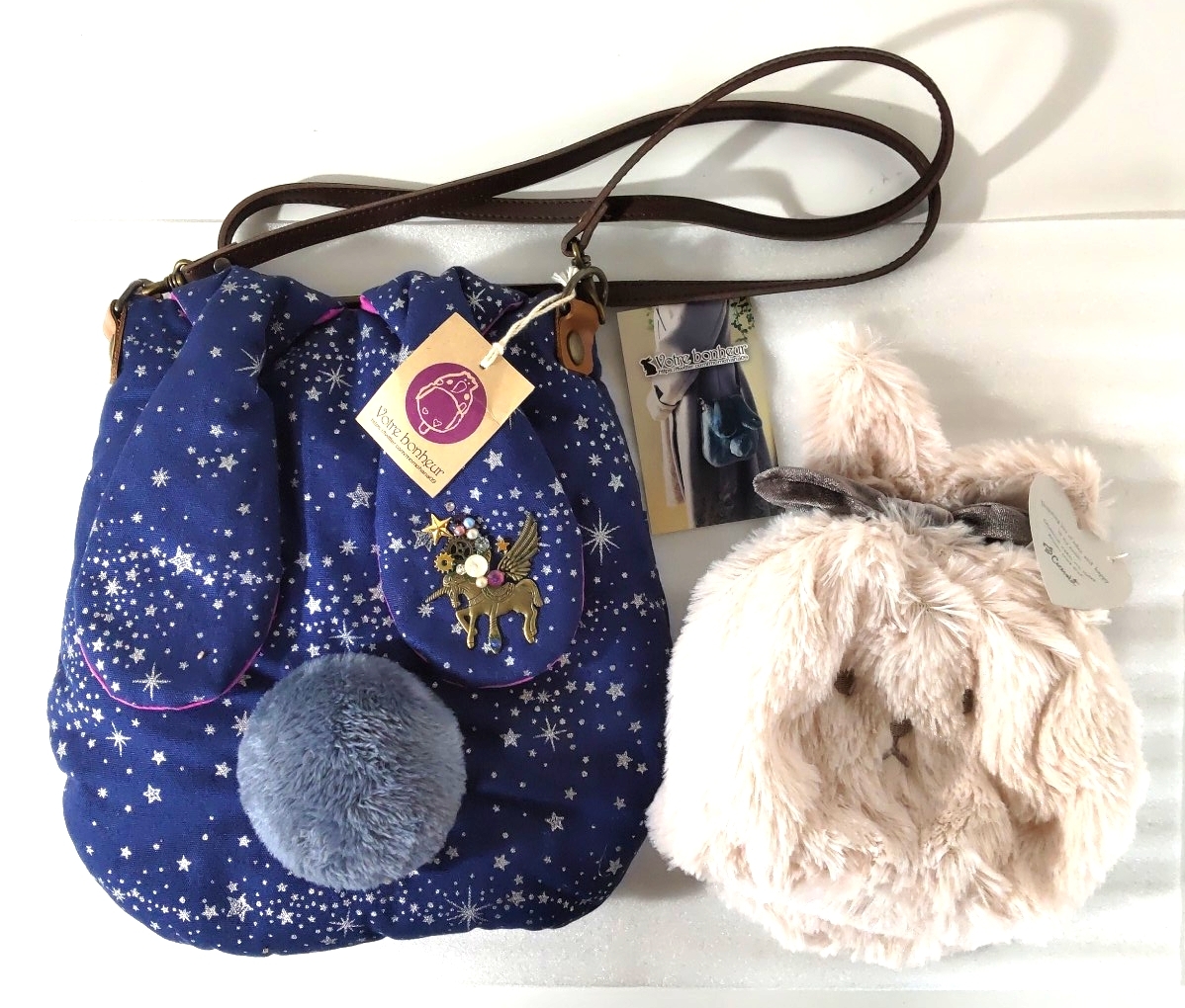 - 未使用 Votre bonheur ショルダーバック & Cocoo nist うさぎ ポーチ 2点セット!うさぎ耳 ネイビー 星柄 バッグ 巾着 ハンドメイド